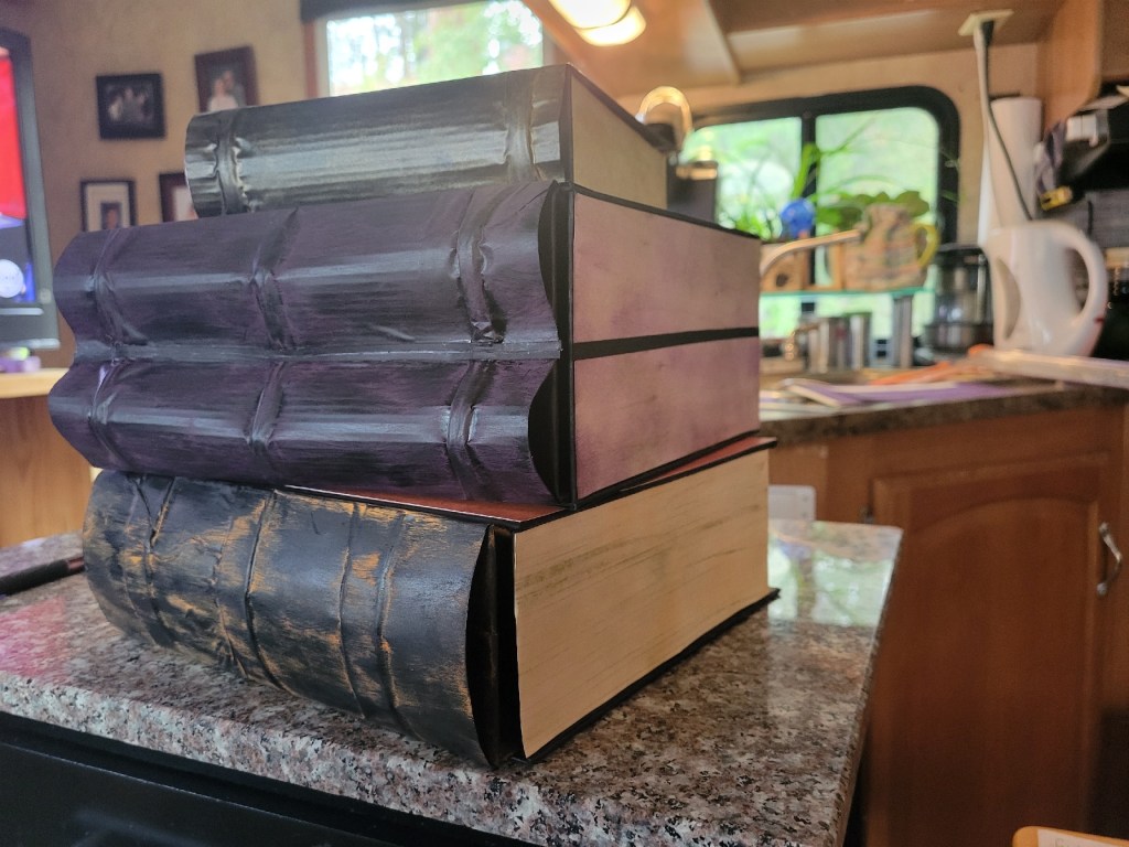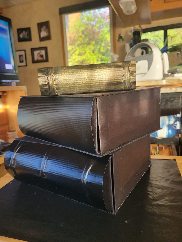 I’m creating a fun “stacked books box” with hidden albums inside. Here are the pictures of my project…