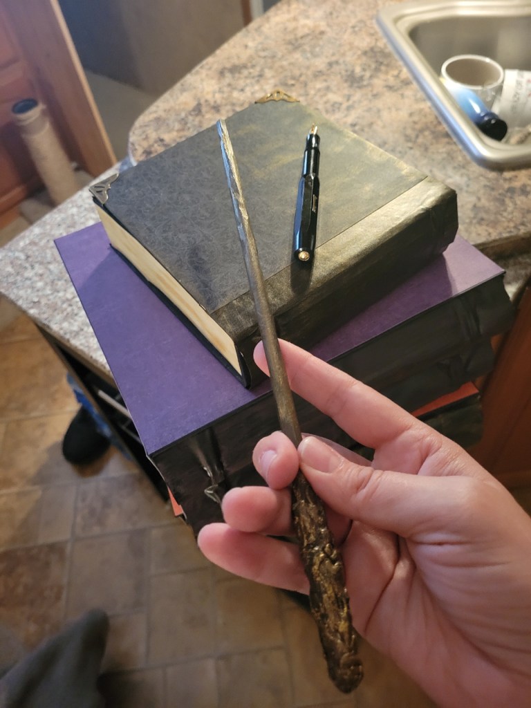 I decided that these books are to look like school books for witches and wizards and need a wand to go with it.I love how this wand turned out.