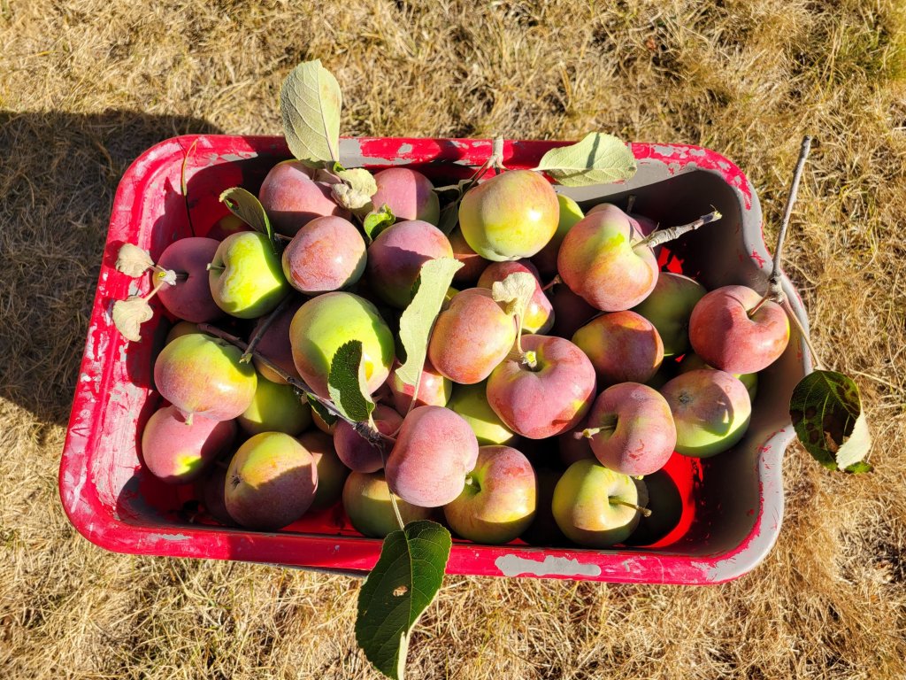 I decided to go apple picking instead of doing stuff on my list too. I asked Dad if he could grab me a ladder and I could happily pick apples while he worked on the truck. That went over like a lead balloon of course. Since my accident over 3 and a half years ago he’s really babied me and made sure I didn’t over do anything. He decided he’d climb the tree and pick the apples and we filled the bucket in 10 min then he went back to the truck.